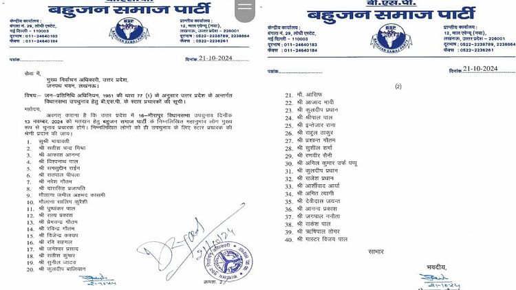 UP By-Election 2024: BSP ने जारी की स्टार प्रचारकों की सूची