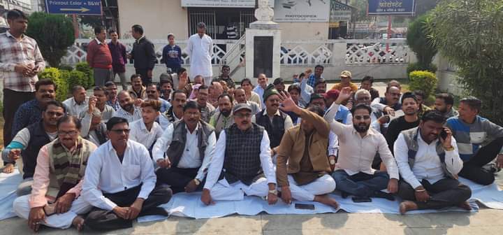 मेडीकल कॉलेज अग्निकांड की उच्चस्तरीय जांच तथा दोषियों पर मुकदमा दर्ज कराने की मांग को लेकर कांग्रेस ने दिया धरना, क्रमिक अनशन की दी चेतावनी।