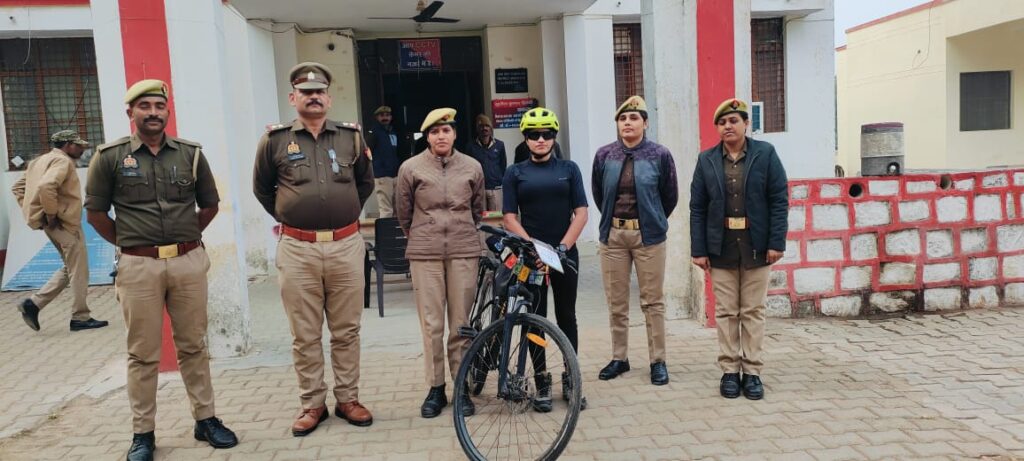 बबीना(झांसी)-महिला सशक्तिकरण और सुरक्षा के लिए 26,000 किलोमीटर की अद्वितीय साइकिल यात्रा करने वाली राष्ट्रीय खिलाड़ी आशा मालवीय को उनके साहसिक प्रयास और समाज में जागरूकता फैलाने के लिए झांसी और बबीना में सम्मानित किया गया। झांसी में डीआईजी और एसएसपी द्वारा सम्मानित किए जाने के बाद, वे बबीना पहुँचीं, जहां बबीना थाना अध्यक्ष सुशील कुमार द्विवेदी ने उन्हें थाना परिसर में सम्मानित किया।