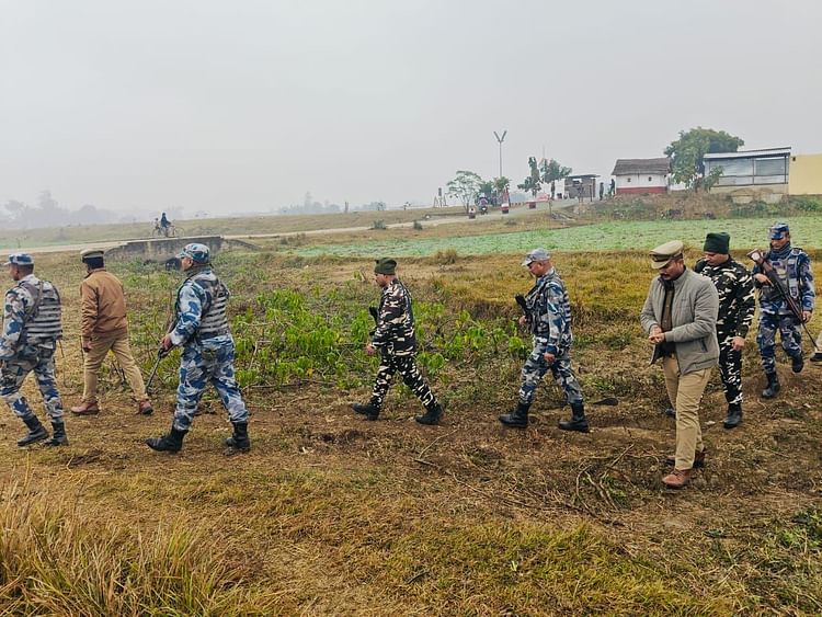 सीमा क्षेत्र का गश्त करतेएसएसबी, पुलिस प नेपाल पुलिस के जवान।