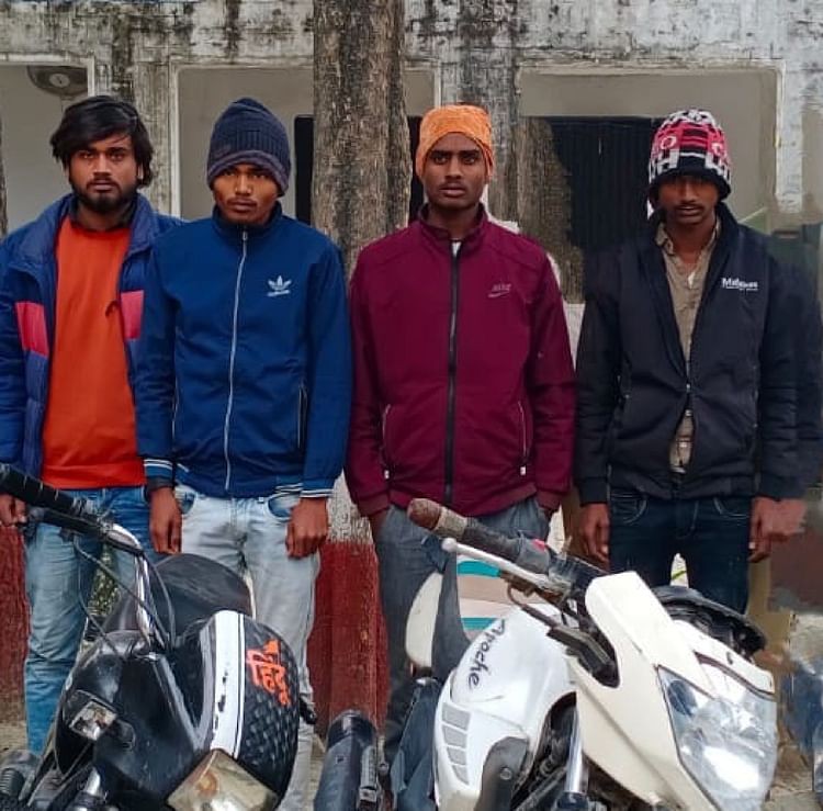 गौरीगंज पुलिस को शनिवार सुबह सुल्तानपुर-रायबरेली रोड स्थित मिश्रौली बाइपास पर बाइक चोरी करने वाले चोरों के मौजूद होेने की सूचना मिली। पुलिस की टीम ने घेराबंदी की तो दो बाइकों पर सवार चार संदिग्ध भागने लगे। संदेह होने पर टीम ने दौड़ाकर चारों को पकड़ा। पकड़े जाने के बाद वे पुलिस को गुमराह करने लगे, कहा कि बाइक के कागज नहीं होने के कारण भाग रहे थे। पुलिस ने एप की मदद से बाइक के नंबरों की जांच की तो वह चोरी की मिली। पुलिस ने उनकी पहचान अमेठी कोतवाली के गोपालपुर गांव निवासी सुनील कुमार, छोटा रामनाथ पुर निवासी साेनू सरोज व परसावा गांव के शिव और मुंशीगंज थाने के तुलसीपुर गांव निवासी आयुष कुमार के रूप में की।