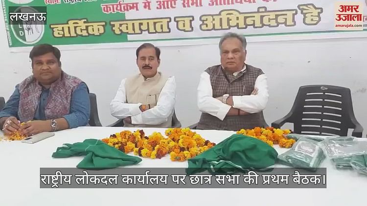 राष्ट्रीय लोकदल कार्यालय पर छात्र सभा की प्रथम बैठक में मौजूद राष्ट्रीय महासचिव संगठन त्रिलोक त्यागी, प्रदेश अध्यक्ष रामाशीष राय व अन्य।