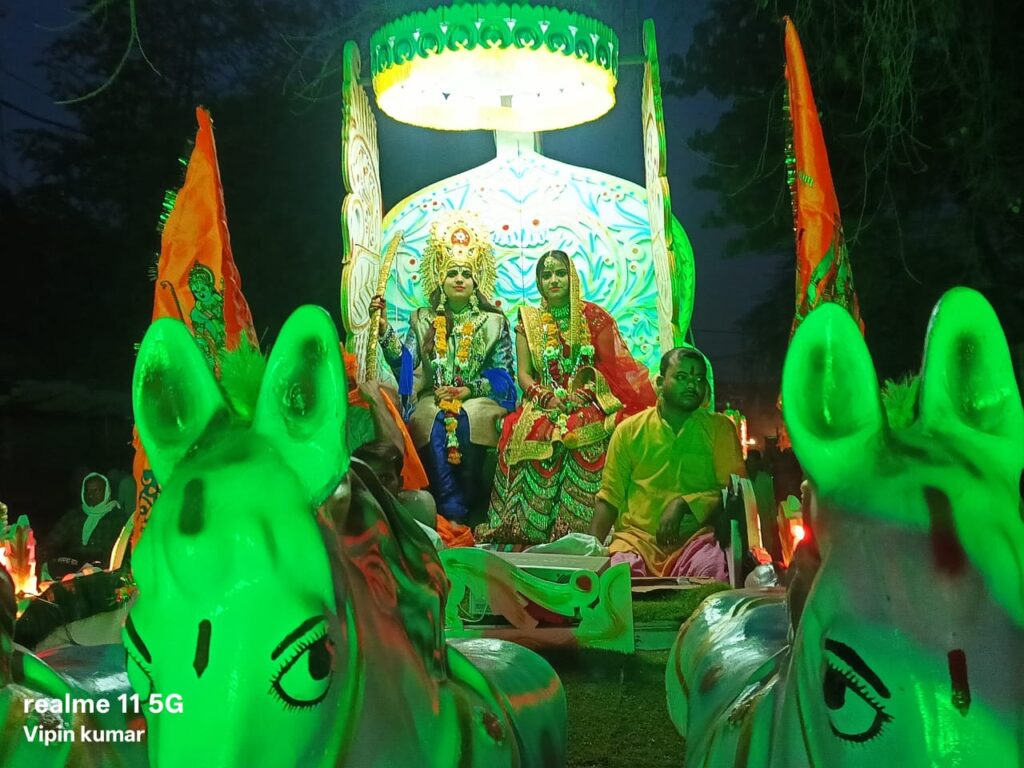 शोभा यात्रा में भगवान श्रीराम, माता सीता जी की सुंदर झांकी बग्गी में सुसज्जित हो कर नगर भ्रमण कराई गई।