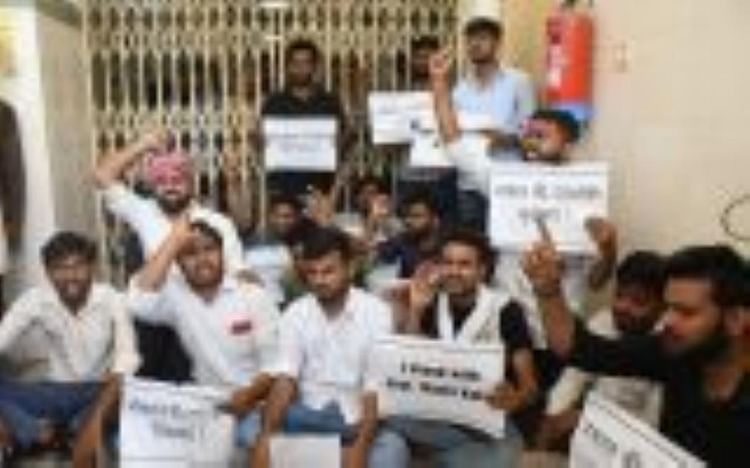 लखनऊ विवि में भाषा विज्ञान विभाग में असिस्टेंट प्रोफेसर माद्री ककोटी पर एफआईआर दर्ज करने के विरोध में संयुक्त छात्र मोर्चा ने प्रदर्शन किया।