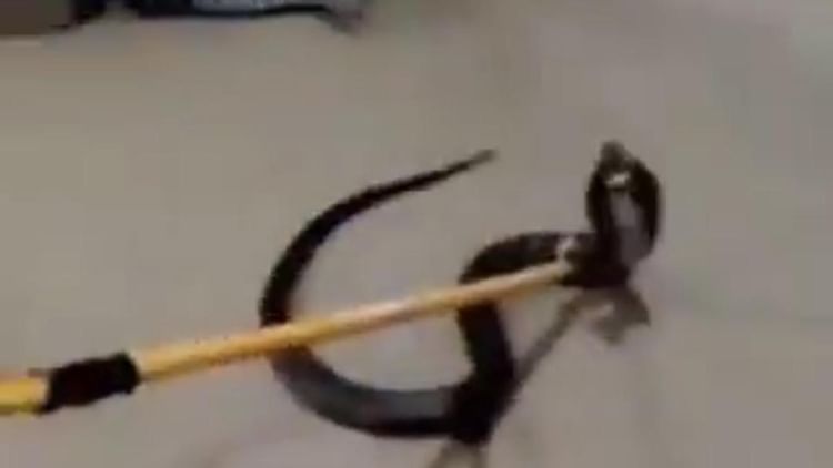 जैसे ही कर्मचारी कार्यालय खोलकर अंदर घुसा तो देखा कि अंदर काला कोबरा फन उठाए फुफकार मार रहा था। यह देख कर्मचारी डर गया और इसकी सूचना तत्काल वन विभाग और अपने अधिकारियों को दी।