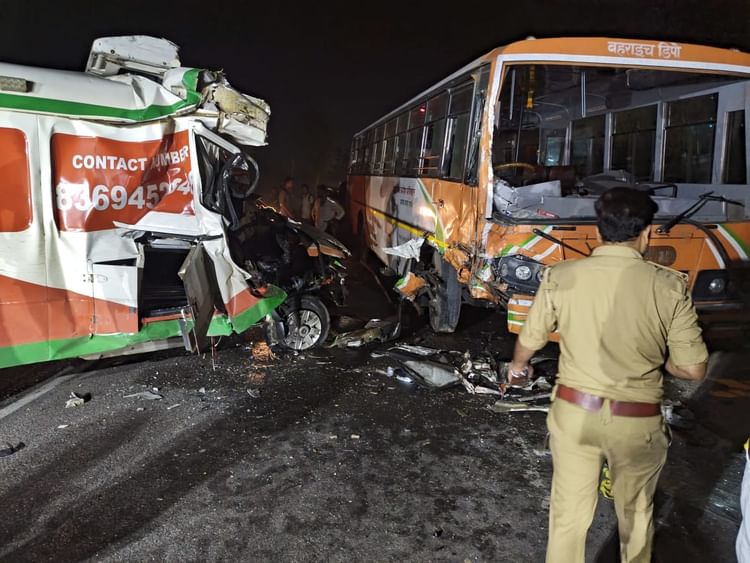 अयोध्या-प्रयागराज हाइवे पर पीपरपुर रेलवे स्टेशन मोड़ के पास मंगलवार रात करीब 9:30 बजे सुल्तानपुर की ओर से आ रही एंबुलेंस की बहराइच डिपो की बस से आमने सामने टक्कर हो गई ।