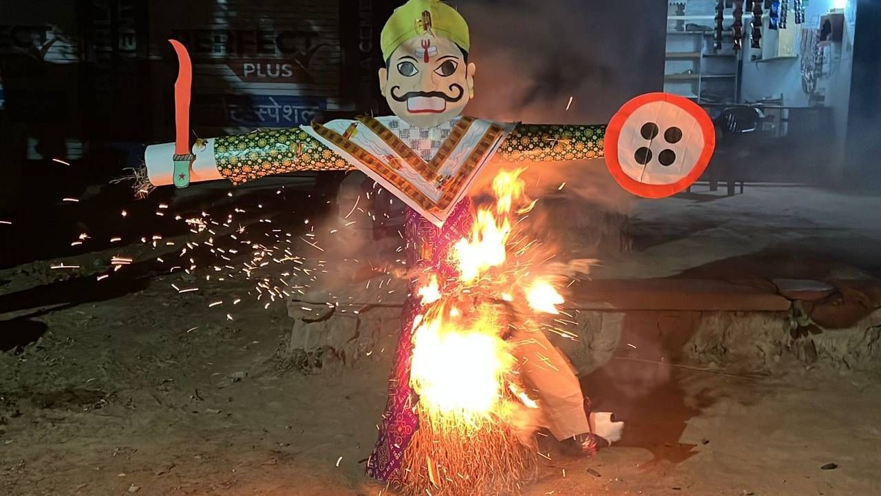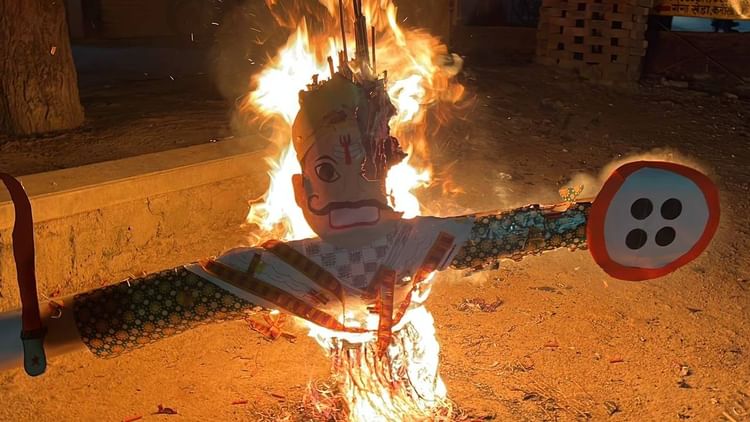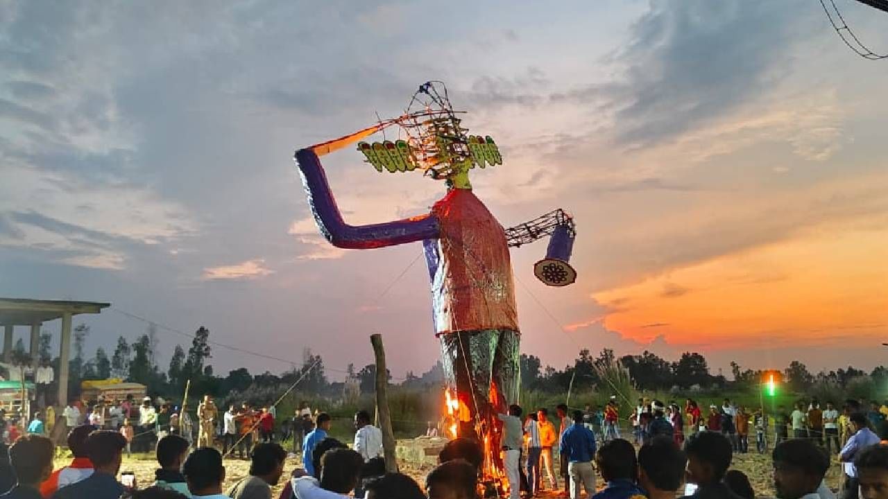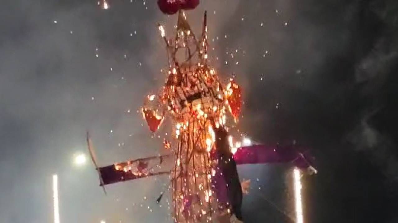 अंबेडकरनगर में 40 फीट ऊंचे रावण का दहन