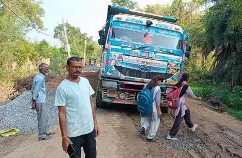 कोंच-पिंडारी मार्ग पर रविवार रात बालू लदा डंपर फंस गया। सोमवार सुबह राहगीरों व स्कूली बच्चों को परेशानी का सामना करना पड़ा।