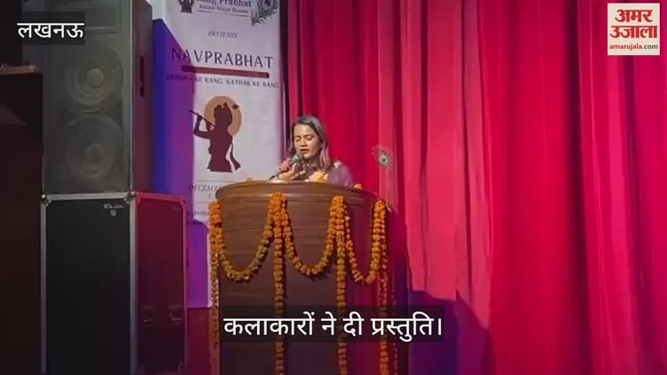 लखनऊ के राय उमानाथ बली प्रेक्षागृह में नवप्रभात की ओर से आयोजित कृष्णा के रंग कथक के संग कार्यक्रम में प्रस्तुति देते कलाकार।