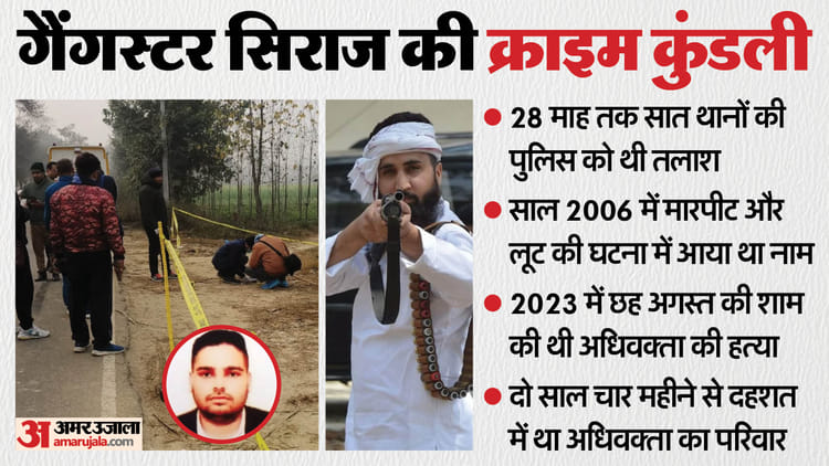 सुल्तानपुर में छह अगस्त 2023 को भुलकी चौराहे के पास गैंगस्टर सिराज अहमद ने साथियों के साथ मिलकर अधिवक्ता आजाद अहमद को ताबड़तोड़ गोलियों से हत्याकर दी थी। इस हत्याकांड में नाम आने के बाद क्राइम ब्रांच समेत तीन टीमें बनाई गईं। उसे खोजने के लिए पुलिस खाक छान रही थी। सिराज चोरी-छिपे घर आता और चला जाता। पुलिस की किरकिरी हुई तो 50 हजार और फिर एक लाख तक का इनाम रखा गया, लेकिन फिर भी पुलिस उस तक नहीं पहुंच पाए।