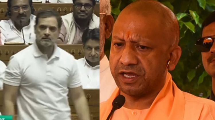 लोकसभा में कांग्रेस नेता राहुल गांधी व सीएम योगी आदित्यनाथ।