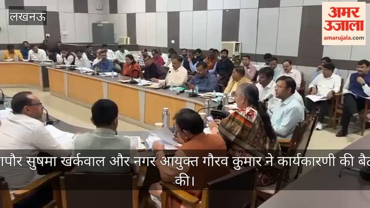 लखनऊ में नगर निगम कार्यालय में महापौर सुषमा खर्कवाल और नगर आयुक्त गौरव कुमार ने कार्यकारणी की बैठक की