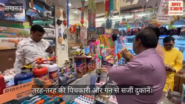 VIDEO: होली की सामग्री से जगमग हुआ बाजार, तरह-तरह की पिचकारी और गन से सजीं दुकानें