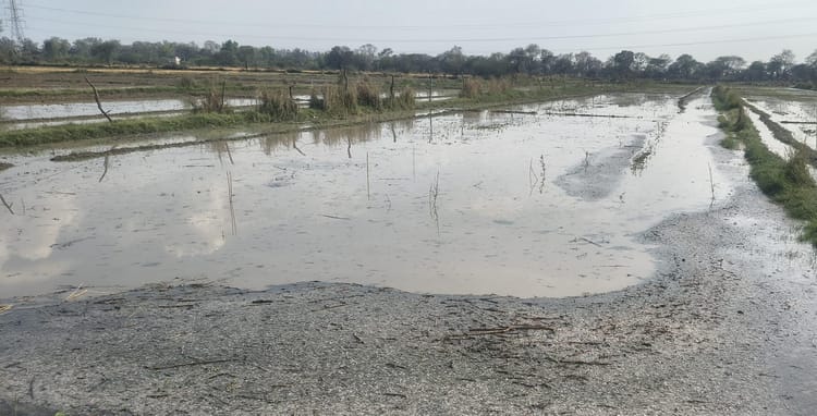 कटाई के बाद खेतों में रखी गेहूं, चना और सरसों की फसलें भीगकर खराब हो गईं।