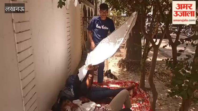 लखनऊ में पेड़ की छांव में अपनी पाली का इंतजार करते होमगार्ड परीक्षा देने आए अभ्यर्थी